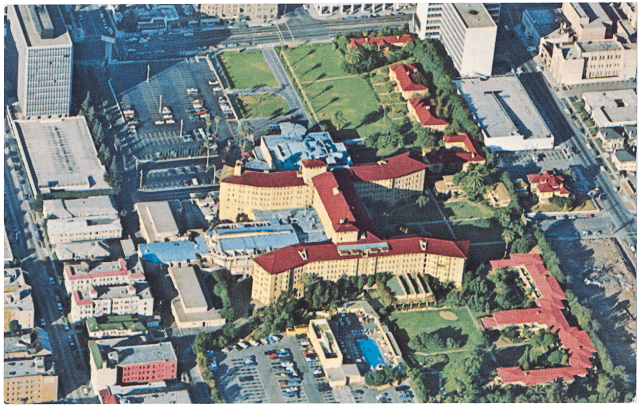 While the main hotel building was torn down, several components of the complex were salvaged and reused. The Cocoanut Grove nightclub was converted into an auditorium and performance space. A coffee shop designed by noted architect Paul Williams was later converted into a faculty lounge. The revered architect also designed the Ambassador’s new bungalows and a remodel of the Embassy Ballroom.